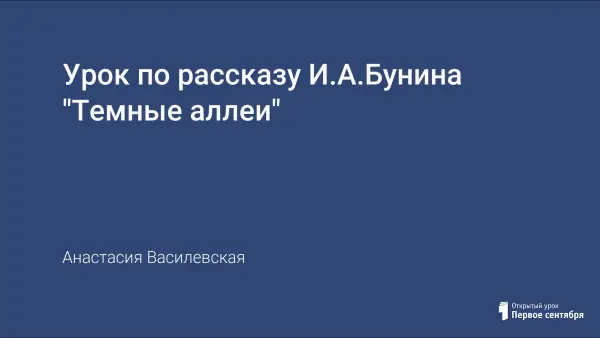 Цели урока: формирование коммуникативной компетенции учащихся через анализ пространственно-временной организации рассказа «Темные аллеи»; понимание особенностей авторской концепции любви в рассказе.