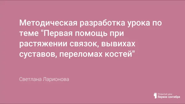 В ходе урока расширяются знания учащихся о различных повреждениях скелета; формируется представление о методах оказания доврачебной помощи. Школьники учатся умению оказывать первую помощь, налагая шину из подручного материала на "поврежденную" конечность одноклассника.