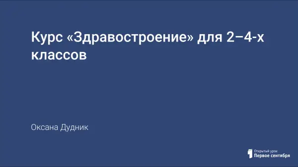 Курс представляет собой важнейшую составляющую сквозного курса «Здравостроение» для 2–11-го классов. Он построен таким образом, что может использоваться и как самостоятельный курс в начальной школе. Курс включает в себя простейшие знания, которые позволят привить навыки здорового образа жизни.