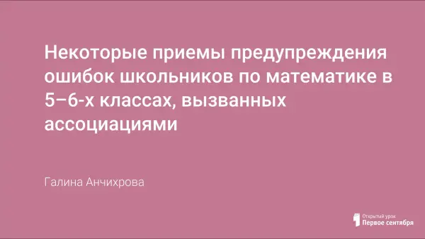 В работе учителя математики важно предупредить ошибки учащихся. В статье рассмотрены некоторые приёмы предупреждения ошибок школьников по математике в 5–6-х классах, вызванных ассоциациями. Результативность работы учителя математики по предупреждению ошибок, вызванных ассоциациями, во многом зависит от его умения видеть характерные ошибки учащихся, возможности развития учебных навыков учащихся, перспективы преемственности в обучении начальной и средней школы.