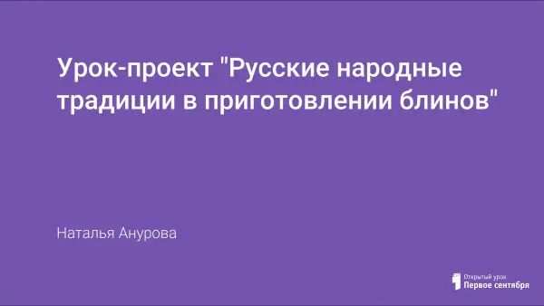 Данный урок входит в раздел "Творческая проектная деятельность учащихся" по программе 7-го класса. Цель: активизация творческих способностей учащихся, воспитание эстетического вкуса, способности творчески мыслить, совершенствование навыков замеса дрожжевого теста, выпекания блинов. На уроке учащиеся защищают проект в виде компьютерной презентации PowerPoint.