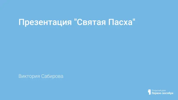 Презентации "Святая Пасха" предназначена для проведения мастер-класса, открытого урока и ознакомления учащихся с Великим праздником верующего человека. Воскресение Спасителя из мертвых – это торжество веры и добродетели, и поэтому этот праздник для каждого верующего – самый светлый, торжество из торжеств.