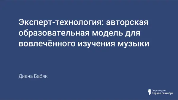 Эксперт-технология — это авторская образовательная модель, направленная на вовлечённое изучение музыки. Она предполагает активное освоение терминологии и развитие критического мышления. Методика включает этапы постепенного освоения понятий и их применения через групповую работу, аргументацию и мотивацию. Технология расширяет возможности инклюзивного образования, создавая условия для активного участия учеников разного уровня подготовки.