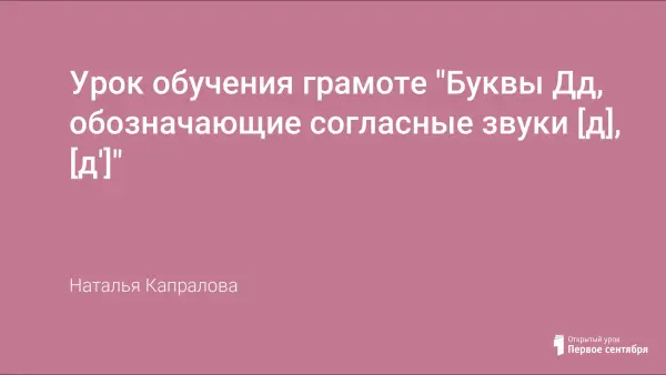 На уроке происходит знакомство с буквой Д и звуками, которые она обозначает; формируется умение работать с текстом, обогащается и развивается речь.