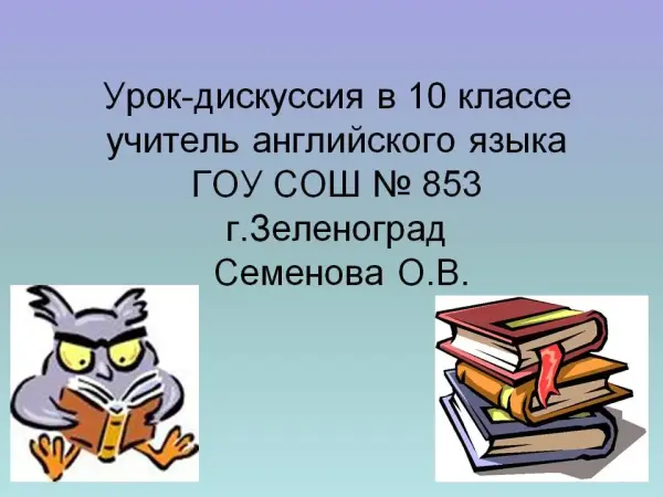 Урок в 10-м классе с использованием мультимедийных технологий. Урок проводится в форме заседания дискуссионного клуба на тему «Проблемы подростков». Это урок с элементами деловой игры, разнообразными формами и методами работы. Целью урока является совершенствование устной речи.