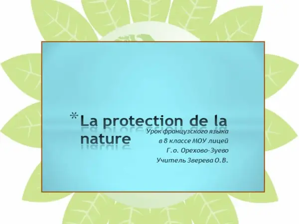 Урок французского языка по теме "Защита природы". 8-й класс