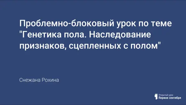 В календарно-тематическом планировании материал данного урока рассматривается после изучения законов сцепленного наследования Томаса Моргана. Структура урока соответствует типу "урок изучения нового материала". Дидактическая цель – добиться осознания и осмысления блока новой учебной информации.