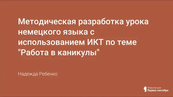 Урок с использованием ИКТ рассчитан на учащихся 11-го класса общеобразовательных школ, которые работают по учебнику Г.И. Ворониной и И.В. Карелиной «Немецкий язык, контакты». Основными учебно-коммуникативными задачами являются систематизация знаний и умений по данной теме.