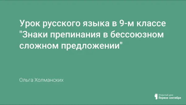 Цель урока – обобщить и систематизировать знания учащихся 9-го класса по теме «Бессоюзное сложное предложение». Данный урок может быть проведен не только по итогам изучения темы, но и при подготовке учащихся к сдаче экзамена по русскому языку в новой форме (тестирование, вопрос В13). В ходе урока используется мультимедийная презентация.