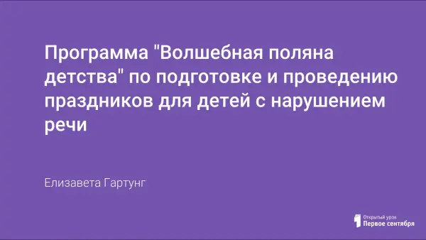 Для развития детей по различным сферам деятельности была поставлена и реализована программа «Волшебная поляна детство» по подготовке и проведения праздников для детей с нарушениями речи. Программа, как средство коррекции речевых нарушений в условиях детского сада, не предполагает развития профессиональных актерских, танцевальных, музыкальных и т.д. умений.
