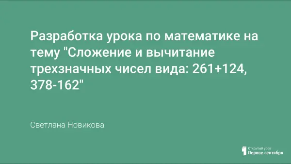 В ходе урока учащиеся знакомятся с приемами сложения и вычитания трехзначных чисел, закрепляют знание состава чисел от 3 до 20, умение решать задачи и уравнения. Урок развивает мышление на основе составления модели и коммуникативную компетенцию на основе организации групповой работы.
