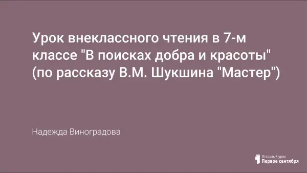 Урок призван показать важность и актуальность проблемы, поднятой писателем, помочь школьникам понять, что автор любуется самобытным человеком из народа. Урок содействует воспитанию духовно богатой личности, развитию творческих способностей.