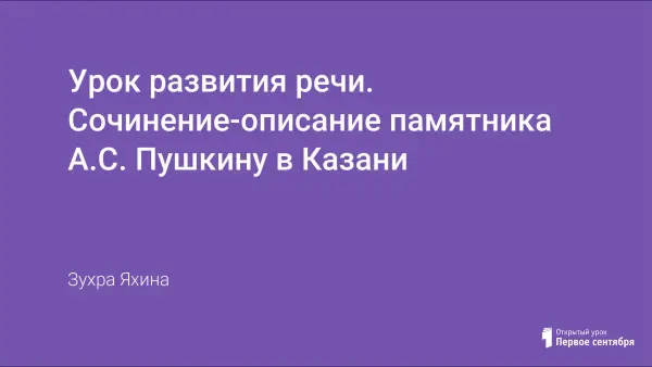 В ходе урока формируются умения строить композиционные части сочинения, развиваются умения изготавливать кластер, используя информацию, полученную на уроке, отрабатываются навыки подготовки сообщения и выступления, проводится словарная работа над архитектурными терминами, воспитывается чувство патриотизма. При подготовке к уроку учащиеся находят историко-литературный материал о пребывании А.С. Пушкина в Казани.