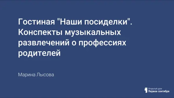 Предлагаются конспекты развлечений для детей 4–5 и 6–7 лет в рамках музыкальной гостиной "Наши посиделки", которые помогут детям познакомиться с профессиями парикмахера и медсестры, сформировать к ним интерес.