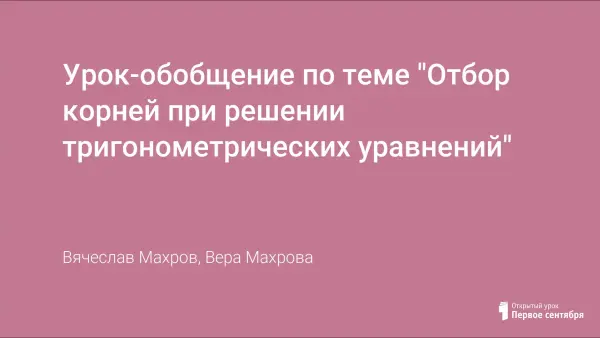 Урок-обобщение по теме "Отбор корней при решении тригонометрических уравнений"