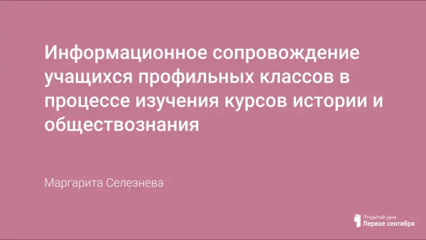 Информационное сопровождение учащихся – деятельность учителя по оказанию помощи школьнику в реализации его образовательных потребностей в предметной области. Оно может осуществляться двумя способами: как непосредственное взаимодействие учителя и учащихся в процессе учебных занятий, факультативов, элективных курсов, консультаций; с помощью информационно-коммуникационных технологий (e-mail, веб-сайт учителя, Skype).