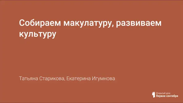 Собираем макулатуру, развиваем культуру