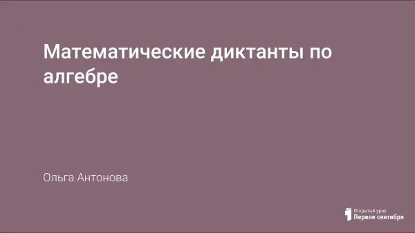 Материал подготовлен для классов, работающих по учебнику А.Г.Мордковича. Математические диктанты предназначены для проверки домашнего задания, актуализации знаний при объяснении нового материала и проверки знаний по теме.