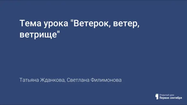 Тема урока "Ветерок, ветер, ветрище"