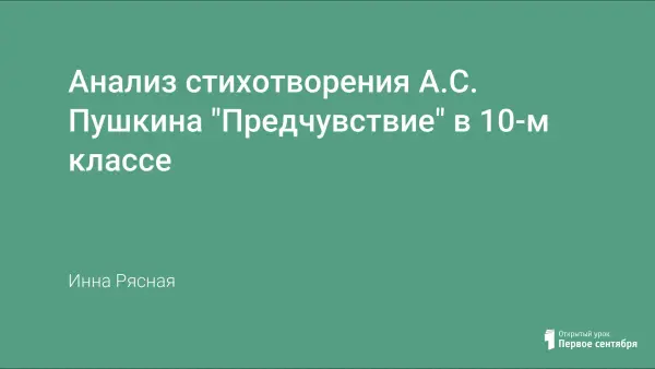Анализ стихотворения А.С. Пушкина "Предчувствие" в 10-м классе