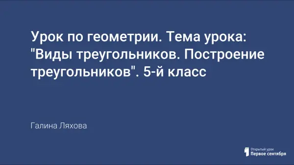 Урок учит детей устанавливать связь между треугольниками, различающимися по виду углов и длине сторон, проверять знания учащихся. По определению вида треугольника сделать чертеж на построение. Воспитывает ответственность за достигнутый результат. Развивает познавательный интерес учащихся. Воспитывает креативное мышление.