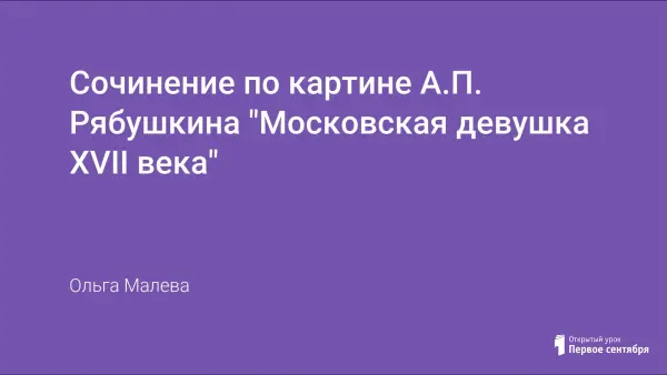 Данный материал преследует цели: познакомить учащихся с замечательным русским художником А.П. Рябушкиным и его творениями, посвященными России XVII века, развить интерес к национальной культуре и быту русского человека того времени, привить любовь к истории Отечества; закрепление и развитие умения использовать односоставные и неполные предложения в речи. Урок сопровождается презентацией.