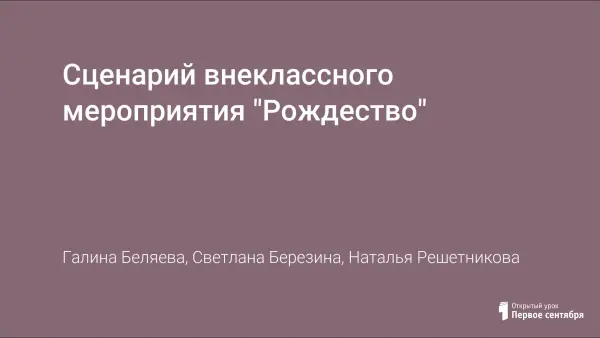 Сценарий «Рождество» предназначен для организации праздников Нового года и Рождества для учащихся 5–6-х классов средних общеобразовательных школ. Способствует повышению мотивации учащихся в обучении английскому языку.