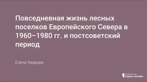 Повседневная жизнь лесных поселков Европейского Севера в 1960–1980 гг. и постсоветский период