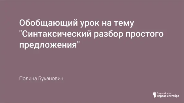 Цель урока: создание условий для систематизации знаний учащихся о простом предложении, необходимых для синтаксического разбора. Задачи: формировать навык синтаксического разбора простого предложения, развивать у учащихся умение давать характеристику простому предложению в целом и каждому члену предложения в отдельности, научить конструировать простое предложение по заданной схеме.