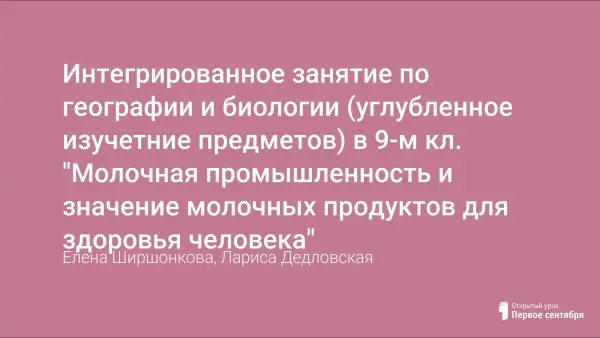 Интегрированное занятие по географии и биологии (углубленное изучетние предметов) в 9-м кл. "Молочная промышленность и значение молочных продуктов для здоровья человека"
