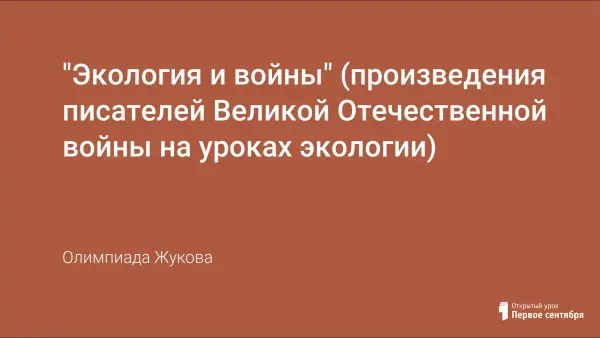 В статье представлены отрывки из произведений писателей ВОВ по основным темам курса экологии (война – экологическая катастрофа). Литература, родившаяся в окопах, – это призыв к человечности, это литература гуманизма, способствующая патриотическому воспитанию учащихся.