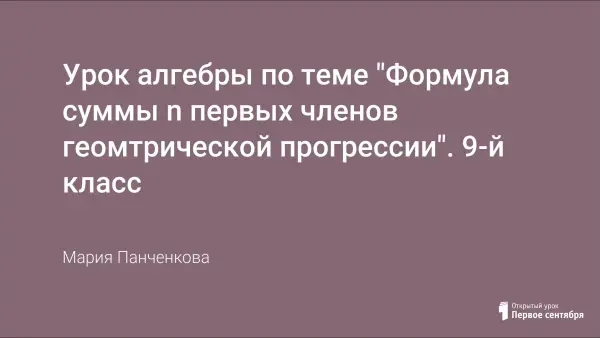 На уроке выводится формула суммы "n" первых членов геометрической прогрессии. У учащихся развиваются вычислительные навыки; рассматривается исторический материал. Различные методы и формы дают положительные результаты, вызывают интерес, желание работать на уроке.