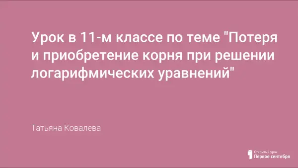 Современные условия требуют от выпускников профильных классов прочных теоретических знаний, владения большим количеством стандартных и нестандартных приемов решения. Урок посвящен концентрации внимания учащихся при решении логарифмических уравнений на случаях приобретения и потери корня, формированию навыков выполнения только тождественных преобразований.