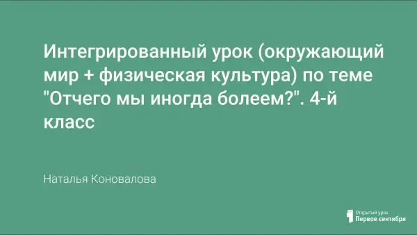 Целью интегрированного урока является информированность учащихся о здоровом образе жизни. Это занятие направлено на ознакомление учащихся с причинами возникновения болезней, способами и методами их профилактики. Учащиеся на данном занятии знакомятся с практическими приемами и методами формирования, укрепления и сохранения здоровья.