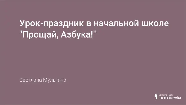 Представлен конспект урока-праздника "Прощай, Азбука" + презентация. Главная цель – в игровой форме обобщить знания детей, создать теплую атмосферу радости и благодарности первой книге.