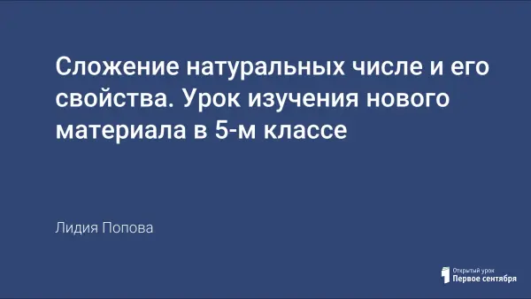 Цели урока: познакомить учащихся со сложением натуральных чисел с помощью координатного луча, вывести законы сложения натуральных чисел; развивать память, внимание; формировать грамотную математическую речь.