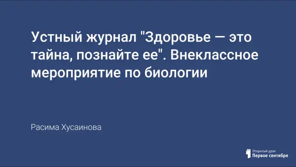 Предложенное в статье занятие направлено на формирование представления о здоровье человека и значении здорового образа жизни. В рамках занятия ученики самостоятельно готовят и делают доклады по данной тематике, что способствует развитию навыков работы с дополнительной литературой.