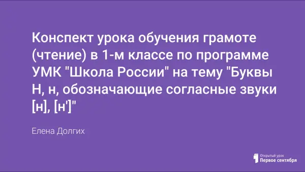 На уроке учащиеся знакомятся с сонорными согласными звуками [н], [н'] и буквами Н, н, учатся давать им характеристику как твердым, так и мягким звукам, продолжают формировать навыки чтения вслух: хором, парами, индивидуально, развивают речь, внимание, фонематический слух.