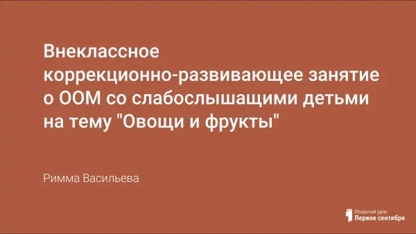 Цель данной работы – научить слабослышащих детей классифицировать предметы (овощи и фрукты), развивать связную речь глухого ребенка и обогатить ее новыми словами, воспитывать культуру общения во время диалога.