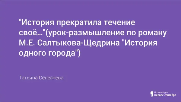 романа Салтыкова-Щедрина "История одного города", а также всего творчества