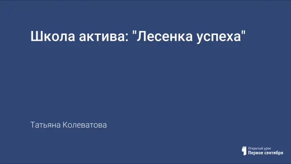 Внеклассное мероприятие "Лесенка успеха" является одним из занятий школы актива для учащихся 3–4-х классов. Занятие проводится с целью подготовить младших школьников к разработке и реализации социальных проектов. Выполняя различные по содержанию задания, учащиеся получают первые навыки проектирования, обучаются планированию.