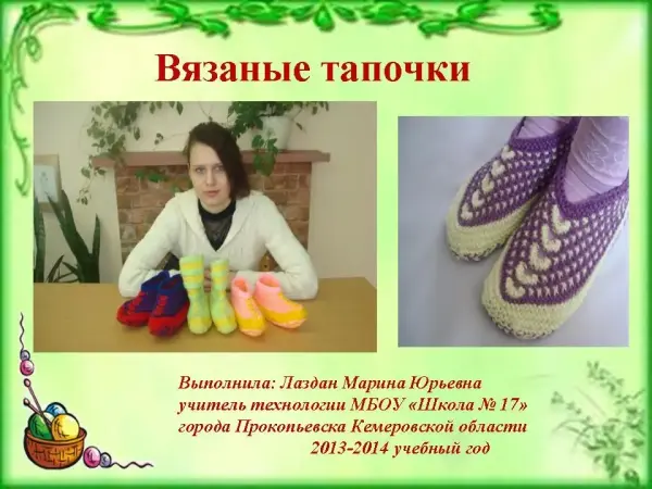 Предлагается рукодельницам и коллегам мастер-класс по изготовлению домашних носочков-тапочек круговыми спицами. Они достаточно просты в изготовлении, поскольку вяжутся в основном лицевыми петлями, но требуют чёткого выполнения всех технологических операций, усидчивости и аккуратности. Получаются очень нарядные и удобные носочки-тапочки без швов, которые можно подарить на любой праздник.