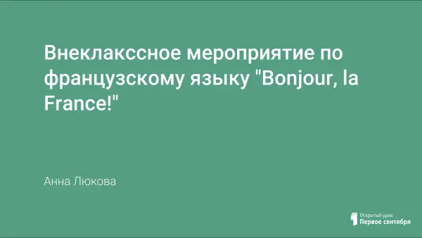 Внеклассное мероприятие «Bonjour,la France» мотивирует детей на изучение французского языка, воспитывает интерес к изучению культуры Франции и позволяет детям совершенствоваться в монологической речи. В ходе мероприятия зрители ознакомятся с гимном Франции, историей его создания, с культурой этой страны.