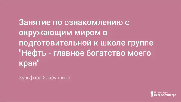 На занятии дети знакомятся с родным краем: его полезными ископаемыми - нефтью. Расширяются знания детей о профессиях, в данном случае - нефтяник. Развиваются умения самостоятельно делать выводы на основе практического опыта.