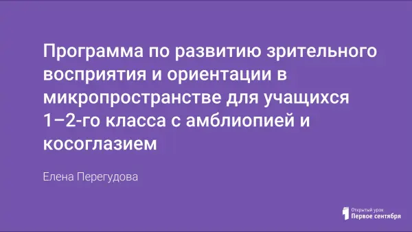 В основу программы по коррекции зрительного восприятия и ориентировке в микропространстве для детей с амблиопией и косоглазием для учащихся 1–2-х классов положена идея графических диктантов Д.Б. Эльконина. Программа призвана научить детей с проблемами зрения ориентироваться в пространстве тетрадного листа и в целом в окружающем пространстве.