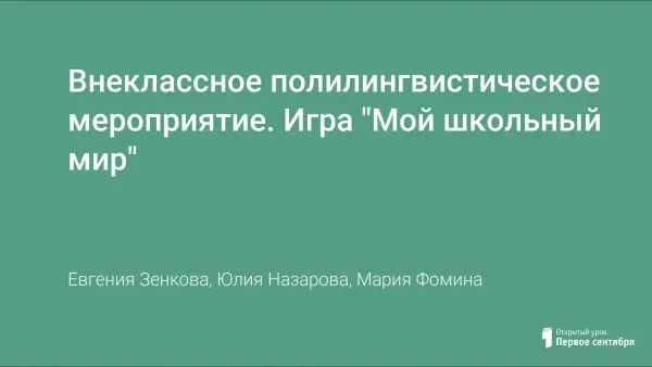 Внеклассное полилингвистическое мероприятие. Игра "Мой школьный мир"
