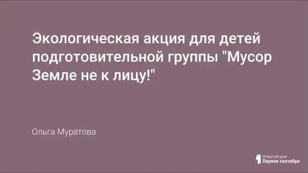 В условиях надвигающейся экологической катастрофы громадное значение приобретает экологическое воспитание как составная часть нравственного воспитания детей. Исходя из вышесказанного, изучив литературу и опыт работы других педагогов по данной теме, автор разработала сценарий экологической акции.