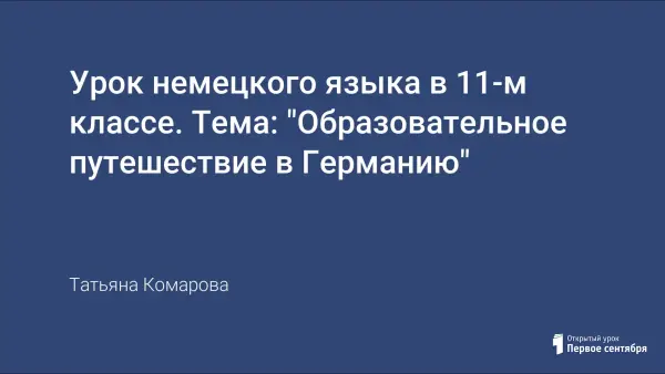 В статье представлена разработка урока немецкого языка для 11-го класса по теме «Образовательное путешествие в Германию». Технология урока – «Образовательный туризм». Это урок обобщения знаний учащихся, полученных во время их путешествия в Германию.
