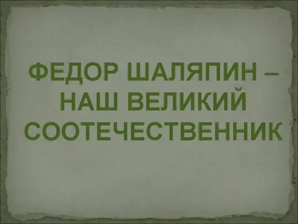 Творчество Федора Ивановича Шаляпина – одна из самых ярких страниц в истории русской вокальной школы конца XIX – начала XX столетия. Голос Шаляпина стал символом своей эпохи. Его имя известно во всем мире, но мы особенно гордимся тем, что родился и вырос он в Казани и является нашим великим соотечественником. Значение родного города в формировании творческой личности гениального певца, сохранение памяти потомков, гордость за своего великого соотечественника - вот главная задача данной презентации.