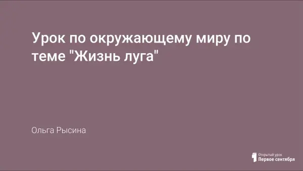 Данный урок помогает сформировать представления учащихся о луге, как о природном сообществе; познакомить с разнообразием живых организмов луга, с ролью человека; развивать интерес детей к природе, умение наблюдать, сравнивать, анализировать; воспитывать любовь к природе родного края.
